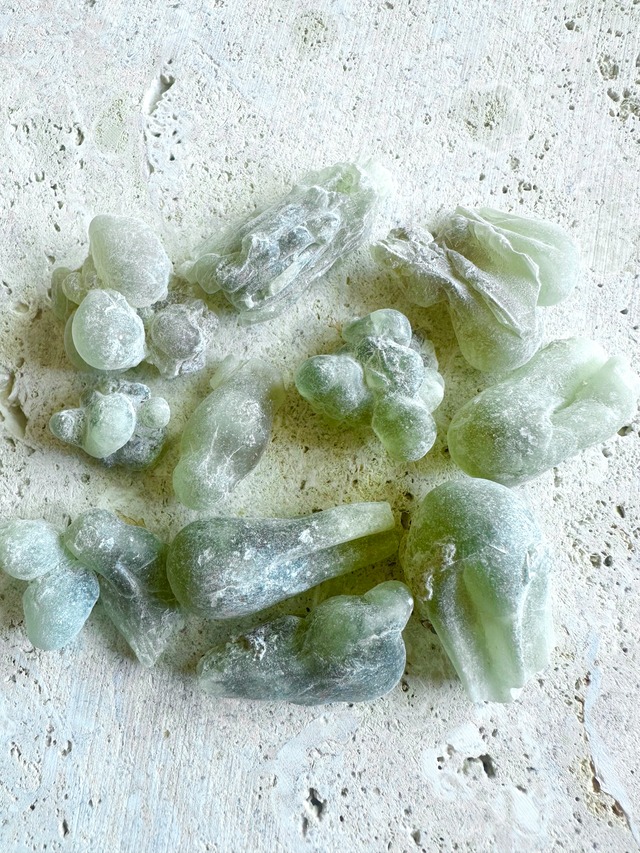 オマーン産フランキンセンス(乳香) Boswellia sacra種 Royal Green 100g オマーン産のフランキンセンスは 世界最高ランクのフランキンセンスです。 そのなかでも最高グレードのフランキンセンスがRoyal Greenです。 最高グレードのフランキンセンスです。 翡翠のようなエメラルドグリーンの美しい見た目。 とても華やかで柑橘系の果物のような甘い香りの中に 神秘的で高貴な香り、繊細さを持っています。 焚いた瞬間、ステンドグラスが美しく輝く教会のイメージがわいてきます。 第8チャクラがパカーンとひらくような感覚。 宇宙と繋がり、漂っているよう感覚になります。 瞑想やヨガにピッタリです。 手摘みで収穫されたこの樹脂は、オマーンのドファール地方にあるボスウェリアサクラの木から採取されました。 オマーンでは何千年もの間、「神々からの香り」とお香として焚いたり、お茶として飲んだり、ゴムのように噛んだり、と健康特性で高く評価されています。 オマーンからフランキンセンスを直輸入しておりますので、最高品質かつ、かなりプライスレスな価格でのご提供です。 コロナ禍で色んな変化があり、ストレスがある世の中ですが少しでも癒しの時間を作ってもらえたら嬉しいです。 ☆☆「フランキンセンス」とは?☆☆ カンラン科ボスウェリア属の樹木から採取される固形の樹脂で、「乳香(にゅうこう)」や「オリバナム」とも呼ばれています。 樹脂とは樹皮より分泌されている樹液に含まれる不揮発性の固形~半固形の物質のことであり、フランキンセンスは樹皮に切り込みを入れて樹液を分泌させることにより採取されています。 フランキンセンスの樹脂は乳白色~黄色~橙色の粒状の固形物質で、スモーキーかつスパイシーなバルサムの香りに、ほのかに果物様の甘い香りと酸味を含んだ、奥深い神秘的な芳香があります。 産地や種により色や芳香に違いがみられますが、透明感があり硬度があるものほど良質であるとされており、希少な青みがかった乳白色のフランキンセンスは最高級品として高値で取引されています。 ボスウェリア属の樹木は中東(イエメン・オマーンなど)や、アフリカ(エジプト・エチオピア・ケニア・ソマリアなど)のほか、インドや中国に分布しています。産地により生育する種が異なっており、その種により色や芳香のことなるフランキンセンスが採取されます ※フランキンセンスの樹脂の緑色や青緑といった色は、時間の経過とともに退色して黄色~茶色へと変色していきます。 なるべく良い状態を保つようにしておりますが、入荷時やご注文のタイミングによっても樹脂の色に差異が生じてしまいます。 また郵送時の環境(炎天下の車内に置かれているなど)によっても熱により、変色がある場合があります。 自然の農産物ゆえの事情ですので、何卒ご了承くださいませ。よろしくお願いします。