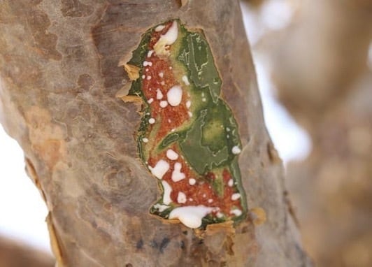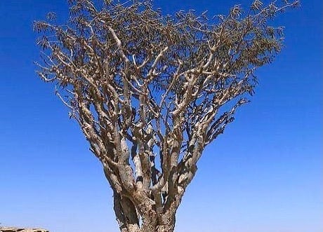乳香の木が自生する、険しく乾燥した山岳地帯で、