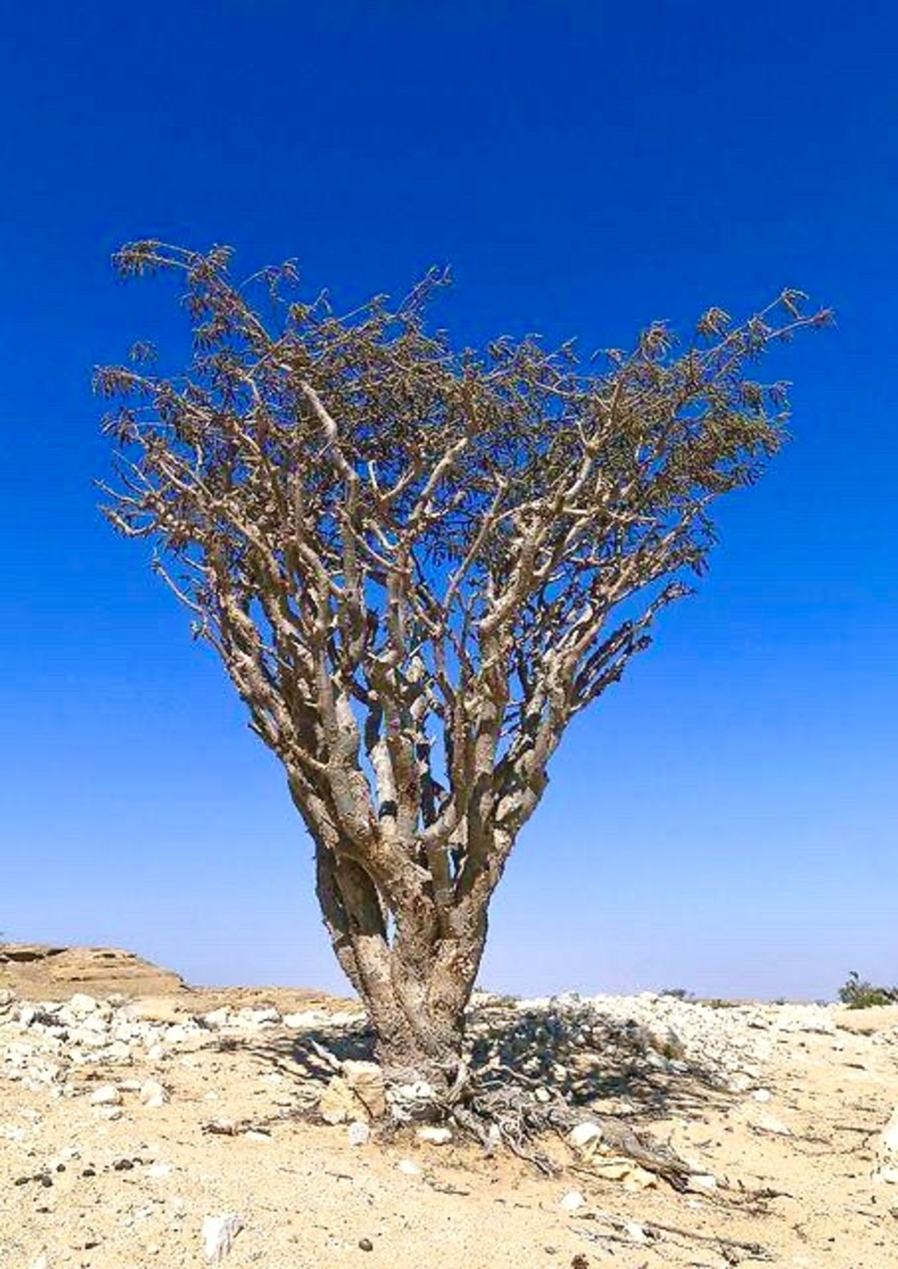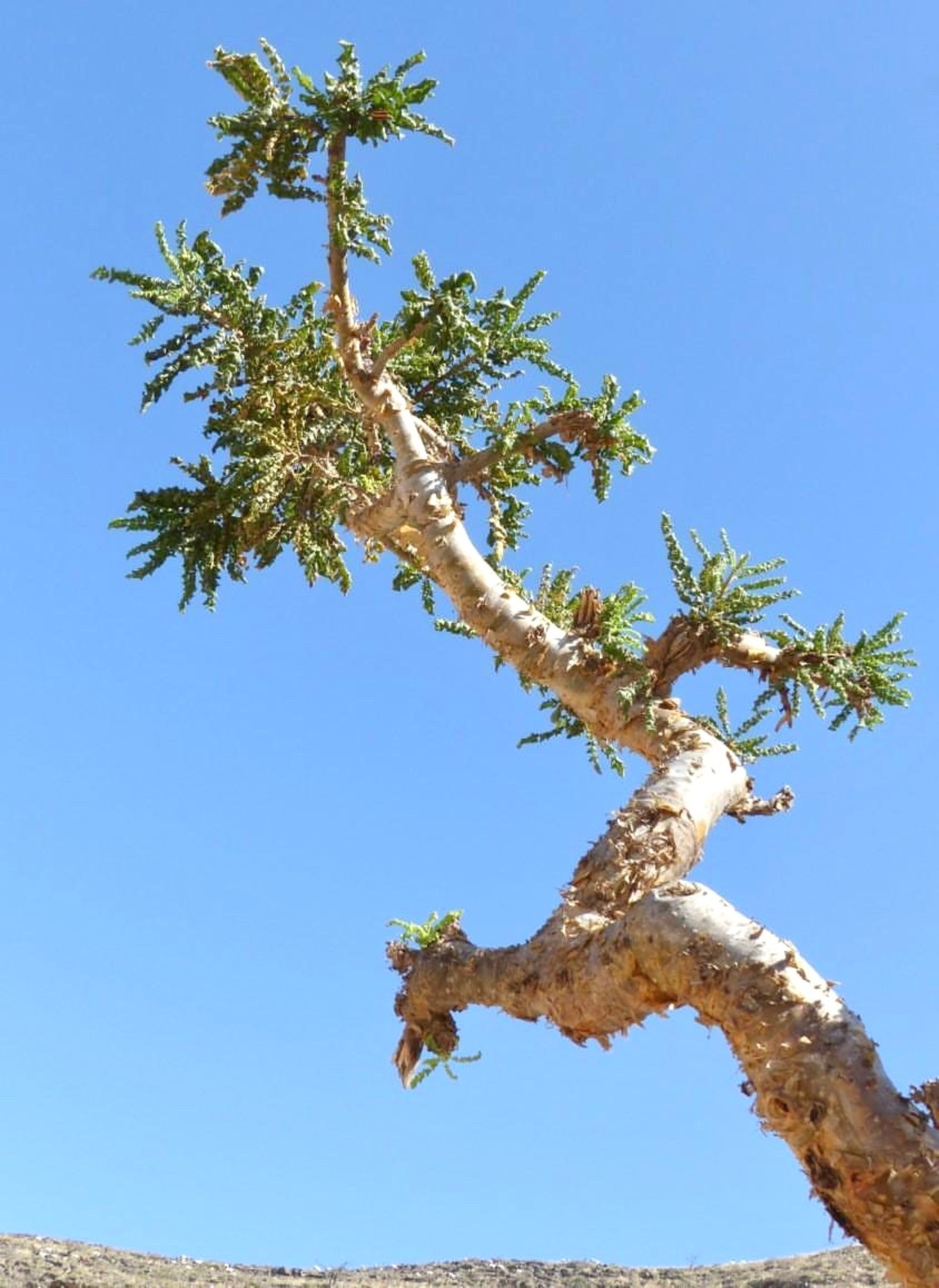 乳香の木が自生する、険しく乾燥した山岳地帯で、