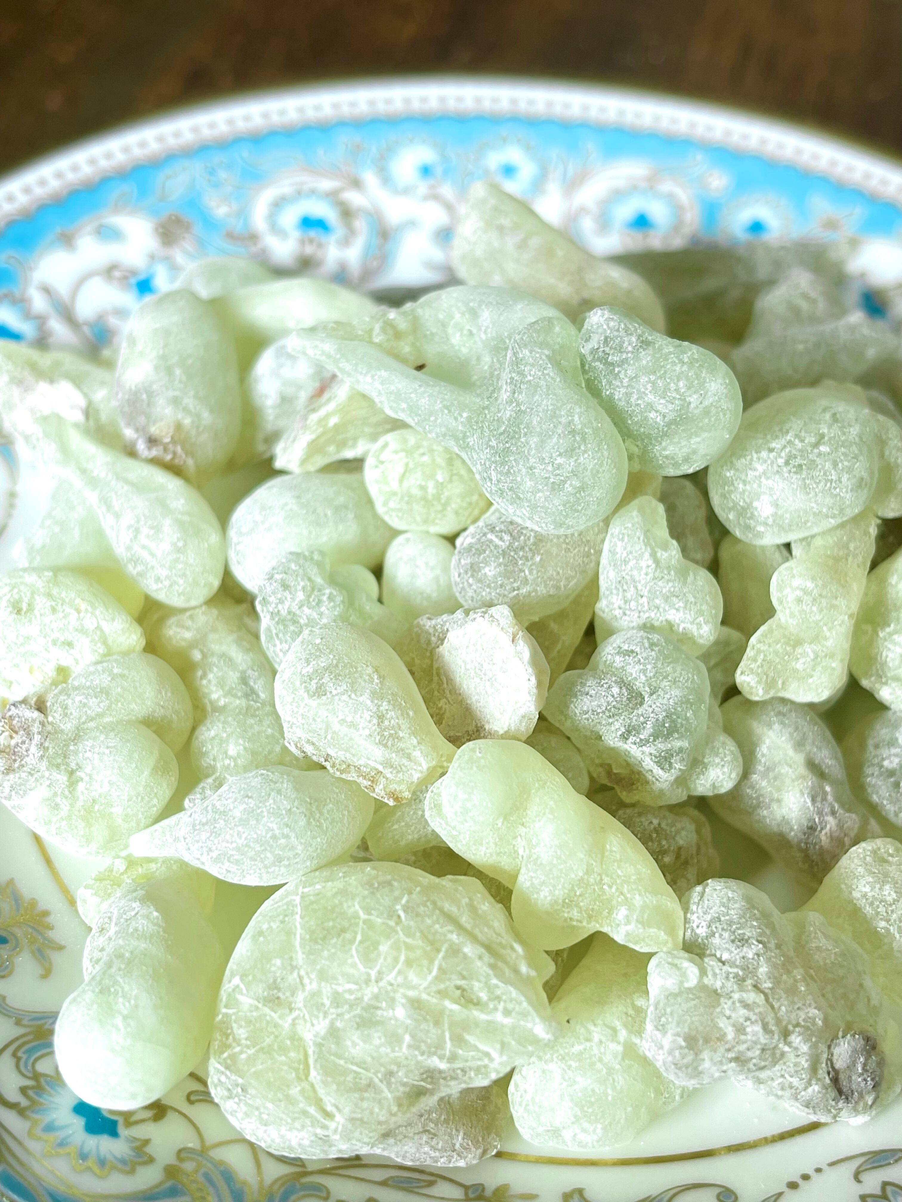 3.燃焼している香炭の上にフランキンセンスを乗せて、香炭の熱で揮発させて香りを楽しんでください。