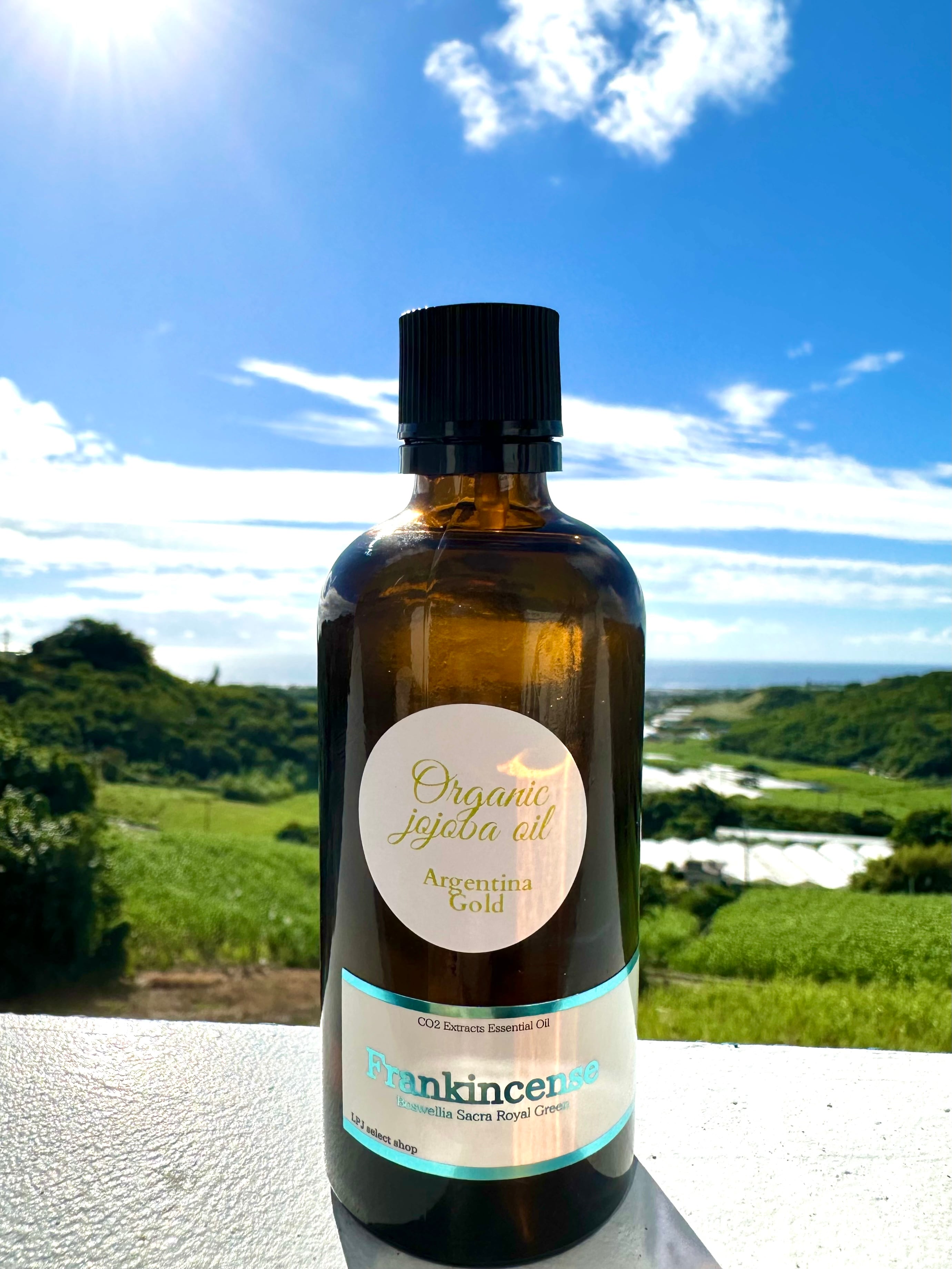 オーガニックホホバオイルGold × フランキンセンスROYALGreen CO2抽出エッセンシャルオイルをブレンドした